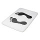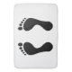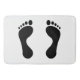 Wissen Sie genau, wo man auf dieser weißen Badmatte des Spaßes mit schwarzen Abdrücken steht.