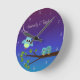 Zwei Babyeuulen kuscheln und setzen sich unter einem Dämmerhimmel voller funkelnder Sterne nieder, während die Mama-Eule über sie wacht. Leicht zu personalisieren oder zu löschen Text nur für Kunstwerke. Dieses Design funktioniert sowohl für mittlere als auch für große Uhren. Original Artwork von Night Owl's Menagerie, 2010.