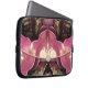 Das abstrakte Design auf diesem 10" Laptop-Sieb, im Stil eines Kupplungssacks, wurde aus einem Originalfoto von ZoeSPEAK eines großen, welligen Blattes und Farne im Garten gemacht. Die rippende Rose rosa Blatt mit ihren cremefarbenen Highlights sieht aus wie fließende, antike Seidengewebe vor den satinierten, brassy goldenen Farnfronten in den tiefen Schatten.