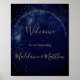 Ein eleganter Abend-Himmel mit goldenen Sternen ist der Hintergrund für dieses persönliche Hochzeitsposter. Ändern Sie einfach die Informationen für Ihr eigenes Hochzeitsdesign.