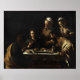Erleben Sie den dramatischen Moment der Offenbarung in Caravaggios Abendmahl im Emmaus (1601), einem meisterhaften Barockmalereigebäude in der Nationalgalerie, London. Dieses Werk stellt die Evangeliumsgeschichte von Luke 24:30-31 lebhaft dar, wo der wiederauferstandene Jesus zwei seiner Jünger während eines Essens im Emmaus seine Identität offenbart. Caravaggio fängt den Augenblick der Erkenntnis mit außergewöhnlichem Realismus und emotionaler Intensität ein. Die erstaunlichen Gesten und Ausdrücke der Jünger kontrastieren mit dem ruhigen, jugendlichen Christus, der, wie im Mark-Evangelium beschrieben, dargestellt wird. Der dunkle Hintergrund und der dramatische Chiaroscuro konzentrieren die Aufmerksamkeit auf die lebensgroßen Figuren und das symbolische Stillleben auf dem Tisch, einschließlich eines Obstkorbs mit Christlicher Symbolik. Dieses Gemälde veranschaulicht Caravaggios revolutionären Naturalismus und die Nutzung des Lichts, um spirituelle Offenbarung zu vermitteln. Ideal für Kunstliebhaber und Sammler, die für ihre Zuhause oder ihr Büro die berühmte italienische Barockkirche suchen.