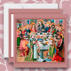 Dieses Tafel wurde 1503 von einem anonymen mittelrheinischen Künstler gemalt und zeigt das in Johannes 12:1-3 erwähnte Abendessen, das in Bethany nach dem Aufziehen von Lazarus stattfand und kurz bevor Jesus am Palmensonntag in Jerusalem ankam. So ist die Stimmung feierlich - merrier und weniger düster als die des letzten Abendmahls, die am folgenden Donnerstag (Donnerstag, 20. Mai) stattfand. Es ist die zentrale Tafel des Triptychentafels, die den Martha-Altar des Südchores der Frauenkirche (Liebfrauenkirche) in Oberwesel, Rheinland-Pfalz, bewundert. + Hier sitzen Jesus und Seine Zwölf Apostel an einem runden Tisch, vermutlich einer von mehreren im Raum, da das Evangelium auf die Anwesenheit von mehr Teilnehmer, einschließlich Lazarus andeutet. Der Tisch wird einzeln betrachtet, je besser das Geschirr und die Lebensmittel zu sehen sind. Die Apostel sprechen untereinander. Eine (St. Bartholomäus?) geschnitten Brot. Im Vordergrund dient St. Martha, eine Schürze tragen und eine Fischplatte tragen, (wie St. John so prägnant formuliert). In der Zwischenzeit, St. Mary, fälschlicherweise identifiziert, als das altarpiece wurde mit der penitenten Magdalene und eine namenlose sündige Frau, Knien gegenüber. Beide Frauen tragen Kleidung aus kostbaren Materialien. Zwischen ihnen kniet der Spender, Canon Peter Luteran, der in einem stark reduzierten Maßstab vertreten ist. Die überfüllte Szene bricht mit Energie und dem impliziten Lärm belebter Gespräche und klatschendem Geschirr. + Sehen Sie auch die St. Martha Artikel - Schürze, Ofen Mitt, Potholer und Serviertabletts - aus unserer Schürze Heilige Serie (q.v.) zu mischen und zu vergleichen! + Image Credit (M 055): Foto von Rolf Kranz eines 100 Jahre alten Gemäldes im öffentlichen Bereich von WikiMedia Commons (Von Rolf Kranz - Eigene Arbeit, CC BY-SA 4.0, https://commons.wikimedia.org/w/index.php?curid=106002864). Das Foto wurde eng auf ein grenzenloses Rechteck zugeschnitten.