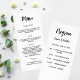 Hochzeitsempfang und Menü. Personalisieren und hinzufügen Sie Ihren Namen, Ihr Programm und das Menü. Weißer Hintergrund, schwarzer Text. Zurück: Fügen Sie die Feier Dinner Menü.
