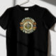 das Vintage Design eines T - Shirt mit einem Retro-Kompass mit einer Berglandschaft im Inneren und der Satz "Abenteuer wartet" 🏔️ 🧭 ✨