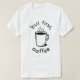 Ein heißer Kaffee in einer Tasse mit dem Zitat "Aber erster Kaffee".