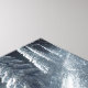 Ein Skifahrer rennt im Mondlicht einen schneebedeckten Hang hinunter und verlasst dabei einen dynamischen Schneefall