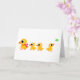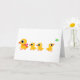 Zu Fuß und beim Quacken folgen zwei kleine Entenlinge ihrer Mutter, während ihre ablenkenden Geschwister abwandern und auf einen Schmetterling aufpassen. Quirky? Vielleicht. Neugierig? Definitiv. Die Karte ist innen leer.