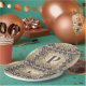 Dieses Abstrakte, grafische Foto wurde in ein exotisches Monogramm-Design verwandelt, das einem handgewebten Teppich ähnelt, der in leuchtenden Farben, Taupe, Bronze, Bräune, Gelb und Schwarz dargestellt wird.