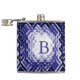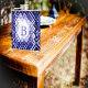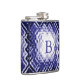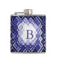Dieses abstrakte, monogramm-Design erinnert an einen marokkanischen Teppichboden und ist in leuchtenden Farben in marineblau, lavendisch, schwarz und weiß gehalten.