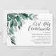 Élégante première sainte invitation à la communion pour votre petite fille présente des feuilles d'eucalyptus aquarelle et le feuillage vert en cascade du coin supérieur gauche. Personnalisez votre cérémonie de communion et les détails de la célébration alignés à droite. Cartes inversées à vert de forêt solide.