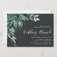 D'élégantes invitations pour un brunch botanique post-mariage sont accompagnées de feuilles d'eucalyptus aquarelles et de feuillage vert en cascade du coin supérieur gauche, sur un riche arrière - plan non-noir. Customisez avec vos détails de brunch mariage en lettres blanches, aligné à droite et agrémenté d'un script de calligraphie chic. Les invitations se retournent vers le vert de mousse solide.