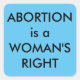 Abortion Is A Woman's Right black text on Sky Blue Quadratischer Aufkleber
