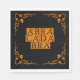 Eine uralte, obskure Beschwörung oder ein Zauber, der zum Schutz ausgeübt wurde. Das Zauberwort in lebendiger Orange, in einem spukhaften Schriftart mit Fledermäusen und einer Grenze mit Schädeln für diese besonderen Trick oder Leckereien oder dieses Halloween-Party.