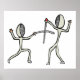 Die Fencing-Konstruktion zeigt zwei Duellexperten mit Epis und Masken - mit dem Ziel, die Schubkraft und Parareinstanzen zu demonstrieren. Coole Grafik für Zaunliebhaber.
