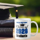 Personalisieren Sie Ihre eigene blaue Tasse zum Schulabschluss für die Abschlussklasse 2026 für eine Abschlussfeier. Coole Uni-Buchstaben für das Jahr auf einem tollen individuellen Gedenkgeschenk für Abgänger. Klassisches Erinnerungsstück mit dem Foto Ihres Schülers.