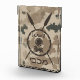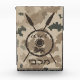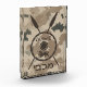 Eine militärisch-braune "gedämpfte" Darstellung eines Maccabee-Schildes und zwei Speere auf einem Wüstenhintergrund. Der Schild wird von einem Löwen und Text mit dem Text "Israel" (Israel) im Paleo-Hebräischen Alphabet geschmückt. Auch der moderne hebräische Text "Maccabee" erscheint. Die Maccabees waren jüdische Rebellen, die Juden aus dem Joch des Seleukiden Reiches befreiten. Chanukkah ist nicht nur ein Mittelwinterfest mit Kerzen und frittierten Köstlichkeiten, es feiert einen militärischen Sieg und sichert die Religionsfreiheit über das Seleukidenreich. Außerdem war der Aufstand ein ziviler Krieg gegen die Juden, die G-d treu waren, und gegen diejenigen, die den Hellenismus der Seleukiden adoptiert hatten.