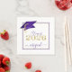 Personalisierte CLASS OF 2025 Graduiertenservietten mit dem Namen Ihres Absolventen in einem eleganten Kalligrafieschrift gezeigt mit einem Imitat lila Folie Graduierdeckel aus Metall und Imitate Goldfolie 2025 mit einem lila und goldenen Rand und lila Text. HILFE: Für Hilfe bei Designänderungen oder Personalisierungen, Farbänderungen, der Übertragung des Designs auf ein anderes Produkt oder der Koordination von Gegenständen, wenden Sie sich bitte an den Designer, bevor Sie die Bestellung über die Registerkarte Zazzle Chat MESSAGE unten durchführen, oder per E-Mail an makeitaboutyoustore@gmail.com.