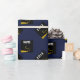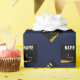 Personalisierte Abschluss-GIFrap mit klassischem Schwarz-Gold-Graduierungssockel auf marineblau-blauem Hintergrund. So personalisieren Sie für den Grad editieren Text, um seinen Namen und Senior-Klasse Jahr hinzuzufügen.