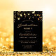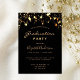 Eine glamouröse Einladungskarte für eine 2025 (oder jedes Jahr) Graduiertenparty für ihn und sie. Ein schwarzer Hintergrund mit goldenen Imitaten. Personalisieren und fügen Sie einen Namen und Party-Details hinzu. Der Abschluss und der Name sind mit einem modernen, handgeschriebenen Stil geschrieben. Golden farbiger Text. Zurück: schwarzer Hintergrund und goldene Sterne.