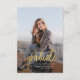Fügen Sie Ihr Lieblings-Foto, die Ankündigung des Abschlusses und die Party Einladung auf der Rückseite hinzu, indem Sie auf die Schaltfläche "Personalisieren" klicken. Mit einem vertikalen Foto mit dem Wort "Absolvent" in fett formatierter Schrift.