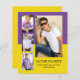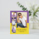Moderne, lila und gelbe 4-Foto Collage Abschluss BUDGET Ankündigungskarte. Personalisieren Sie Ihre Fotos mit den Lieblingsbüchern Ihres Absolventen und fügen Sie ihren Namen, Schule und Abschluss Jahr. Verwenden Sie Zazzles Design-Tool, um die Hintergrundfarben in Ihre Schulfarben zu ändern.