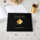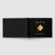 Ein elegantes und mädchenhaftes Gästebuch für eine Abschlussfeier 2021. Chic schwarzer Hintergrund und ein moderner abstrakter schwarzer Tassel Topper in den Imitaten Gold, mit dem Jahr innen. Der Text Graduate und der Name werden mit modernen Stilskripten geschrieben. Golden farbiger Text. Spine: Fügen Sie Ihren eigenen Text hinzu.
