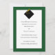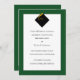 Klassisches Abschluss-Ankündigungsdesign mit schwarzer Kappe und goldener Tassel auf grünem Hintergrund.