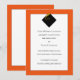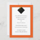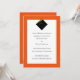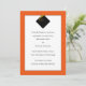 Klassisches Abschluss-Ankündigungsdesign mit schwarzer Kappe und goldener Tassel auf orangefarbenem Hintergrund.