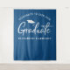 Moderne Foto-Kulisse für seine Abschluss-Feiern. "Glückwunschs To Our Graduate" ist in einem Mix aus schlichter weißer Typografie und einem großen weißen Drehbuch auf klassischem Hintergrund geschrieben. Personalisieren Sie mit seinem Namen und Klassenjahr in einfacher weißer Typografie. Sie können die Farben in Ihre Schulfarben ändern, indem Sie das Design-Tool verwenden.