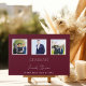 Ein weinroter Hintergrund. Weißer Text Personalisieren und hinzufügen von 3 Fotos, Name, Schulname und Jahr. Für ihn und sie. Der Name auf der Vorderseite wird mit einem handgeschriebenen Stilskript geschrieben.