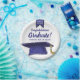 Abschluss Papier Teller mit einem Blue Grad Cap und Banner und Gratulationen Text - fügen Sie Ihre Gradklasse Jahr und benutzerdefinierte Zeile Text School oder Student Namen). Ideal für Abschlussfeiern und Feiern.