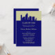 Moderne Einladung ideal für einen Absolventen der Architektur, Bau oder ähnliches Feld. Eine Skyline-Silhouette in solider Farbe. Ideal für einen männlichen oder weiblichen Abschluss. Das Jahr des Abschlusses macht es zu einem Sake. Fügen Sie Ihre eigene Formulierung hinzu.