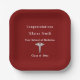 Elegante Teller mit Caduceus, für Ihren Doktortitel in Medizin. Dunkelroter Hintergrund kann in eine beliebige Farbe geändert werden. Geben Sie Ihren Namen, die Universität und Ihr Jahr des Abschlusses ein.