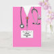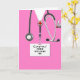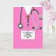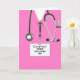 Kreative Medizin-Abschluss-Karte für Doktorgrad mit rosa Krankenhausaufnahmen und lustigem Schweizer Armeemesser. So personalisieren Sie Text bearbeiten, um den Namen des Arztes hinzuzufügen und anderweitig anzupassen.