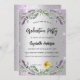 Eine moderne, stilvolle Abschlussfeier. Ein silberfarbener Hintergrund mit violetten Imitaten, Glitzern, Lavendelblumen, Blume und Eukalyptuspflanzen. Personalisieren Sie den Namen und die Party-Details und fügen Sie diese hinzu.