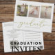 Dieses Design verfügt über eine einfache Zwei-Foto-Abschluss-Einladungsvorlage, mit QR-Code und Facebook-URL für Website und Online-Veranstaltungsseite. Ein dreiteiliges, elegantes Graduiertenlayout mit moderner Kalligraphie, trendiger Schrift-Typografie, ideal für High School- oder Uni-Vertikal, ein Abschluss-Party laden ein, ein Student minimalistisches Design, große Gratulationen-Gratulationen-Gratulationen mit Goldtext und weißem Hintergrund, mit Goldtext und extravagantem Schriftart, Golden Goldtext