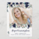 Navy blauen und rot rosa Blumenstrauß Rand am oberen und unteren Ende des Fotos Ihres Absolventen mit Namen, geschlossen Jahr und Schule auf der Front und Abschluss Party Einladung Details auf der Rückseite. Moderner, handgeschriebener Schriftart für den Namen des Absolventen und den Titel der GRADUATION PARTY. FOTO-TIPP: Wählen Sie ein Foto mit dem Thema in der Mitte und/oder schneiden Sie es vor dem Hochladen auf eine ähnliche Form wie vor dem Hochladen und es füllt den Foto perfekt. Wenden Sie sich an den Designer, wenn Sie dieses Design modifizieren möchten, an einem anderen Produkt oder an einem koordinierenden Artikel für Ihre Veranstaltung.