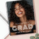 Abschluss Gästebuch mit dem Namen und Jahr des Absolventen über und unter dem Text "grad" in einem lustigen, modernen Schriftart als weißes Overlay über Ihrem individuellen Foto.