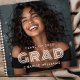 Abschluss Gästebuch mit dem Namen und Jahr des Absolventen über und unter dem Text "grad" in einem lustigen, modernen Schriftart als weißes Overlay über Ihrem individuellen Foto.