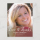 Schicken Sie Ihrer Familie und Ihren Freunden ein elegantes Dankeschön an die Postkarte für ihre Abschluss Geschenke. Dieses Design zeigt Ihr Foto auf der Vorderseite mit einem modernen Skript, das liest. "Liebe & Dank" in schwarzer Typografie mit Ihrem Namen, Schule und Klasse/Jahr unten, um zu personalisieren. Die Rückseite der Karte zeigt eine Graduationskappe und scrollen mit einer Nachricht, die Sie anpassen können. Designed by artist ©Susan Coffey. Fotografie © Storytree Studios, Stanford, CA.