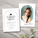 Schwarz-Weiß-Abschluss-Einladung bietet moderne Typografie und Bogenrahmen mit Foto auf der Rückseite, elegant und minimalistisch. Stellen Sie es mit Ihren eigenen Foto- und Abitur-Party-Informationen ein.
