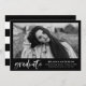 Ankündigen Sie Ihren Abschluss mit unseren stilvollen, modernen Watercolor Pinsel Script Graduierungsankündigungen! Die modernen Graduierungsankündigungen zeigen das schwarz gerahmte Foto des Absolventen mit "Graduate" in einem trendigen, weißen Aquarellpinsel-Skript. Fügen Sie den Namen des Absolventen, die Schule, das Abschluss-Jahr und die künftigen Pläne hinzu. Die Ankündigung kehrt zu einem schwarz-weiß gestreiften Hintergrund mit Platz für zusätzliche Fotos und Text zurück.