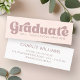 Mini Abschluss Visitenkarten in hellrot rosa mit Retro-Text "Graduate" auf der Vorderseite zusammen mit Jahr und Schulname. Fügen Sie Ihre Kontaktinformationen auf der Rückseite ein.