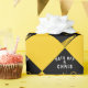 Grad Geschenkpackung oder Graduierungsparty Dekoration mit schwarzer Kappe mit goldenen Tassel auf einem gelben Hintergrund. Bearbeiten Sie Text, um seinen Namen hinzuzufügen.