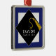 Grad-Sake-Geschenk mit schwarzer Graduierenkappe und Gold-Tassel-Design auf einem blauen Hintergrund. Bearbeiten Sie Text, um den Namen des Absolventen und das Senior Class Year hinzuzufügen.