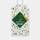 Kreative Abschluss Glückwunsch Geschenketiketten und Grade Gastgeschenke, mit grünen Kappe mit einer Goldtassel auf Konfetti Hintergrund. Bearbeiten Sie Text, um den Namen und das Senior Class Jahr des Absolventen hinzuzufügen.