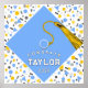 Creative Abschluss Glückwunschs Party Poster, mit hellblauer Kappe mit einer goldenen Tassel auf Konfetti Hintergrund. Zum Personalisieren fügen Sie Text seinen Namen und das Senior Class Year hinzu.
