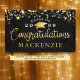 Erstellen Sie ein modernes, personalisiertes Abschluss-Bannerzeichen mit dem Titel GRATULATIONS NAME in einem stilvollen handgeschriebenen Kalligrafieschrift Metallische Goldtypografie mit goldenen Sternen, Konfetti und Streichleuchten in Ihrer Hintergrundfarbe (schwarz dargestellt) können Sie in eine Schulfarbe wechseln, eine koordinierte Party-Themenfarbe wählen oder aus gestylten Grafikehintergründen für ein individuelles Aussehen. ÄNDERUNGEN: Ändern Sie die Hintergrundfarbe oder den Textstil, die Schriftgröße, die Farbe, den Abstand und die Platzierung des Schriftartes in EDIT. OPTIONEN: Das Muster wird in 3x5' Größe angezeigt - andere Größen sind auf der Bestellseite verfügbar oder das Design kann auf ein Plakat, eine Schaumkarte, ein Tapisserie oder ein anderes Produkt übertragen oder vom Designer in eine digitale Download-Datei für den lokalen Druck konvertiert werden. HILFE: Für Hilfe bei der Modifikation/Personalisierung des Designs, bei Farbänderungen, bei der Übertragung des Designs auf ein anderes Produkt oder wenn Sie die Dinge koordinieren möchten, wenden Sie sich bitte an den Designer, BEVOR Sie über Zazzle Chat oder makeitaboutyoustore@gmail.com bestellen.