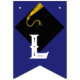 Abschluss Glückwunschs Party Dekoration mit klassischen schwarz-goldfarbenen Graduierungsmütze auf blauem Hintergrund.