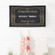 Abschluss-Banner mit elegantem Gold, Deko, geometrischer Rahmen auf schwarzem Hintergrund.